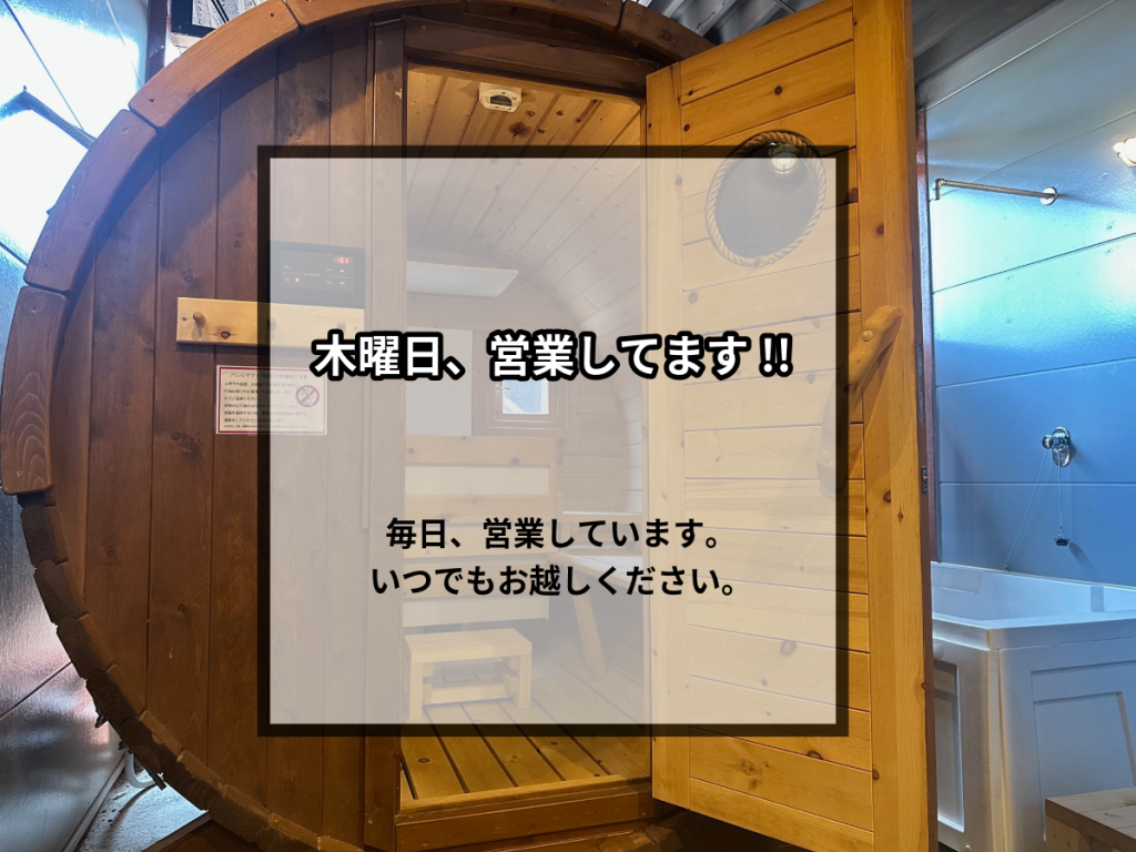 当館は天然シベリア杉を使用したバレルサウナを