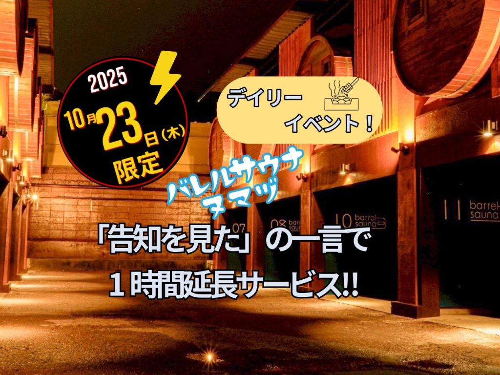 10月23日はイベントデーです。告知を見たの一言で1時間の延長サービスが受けられます。ご来店を待ちしております。 -