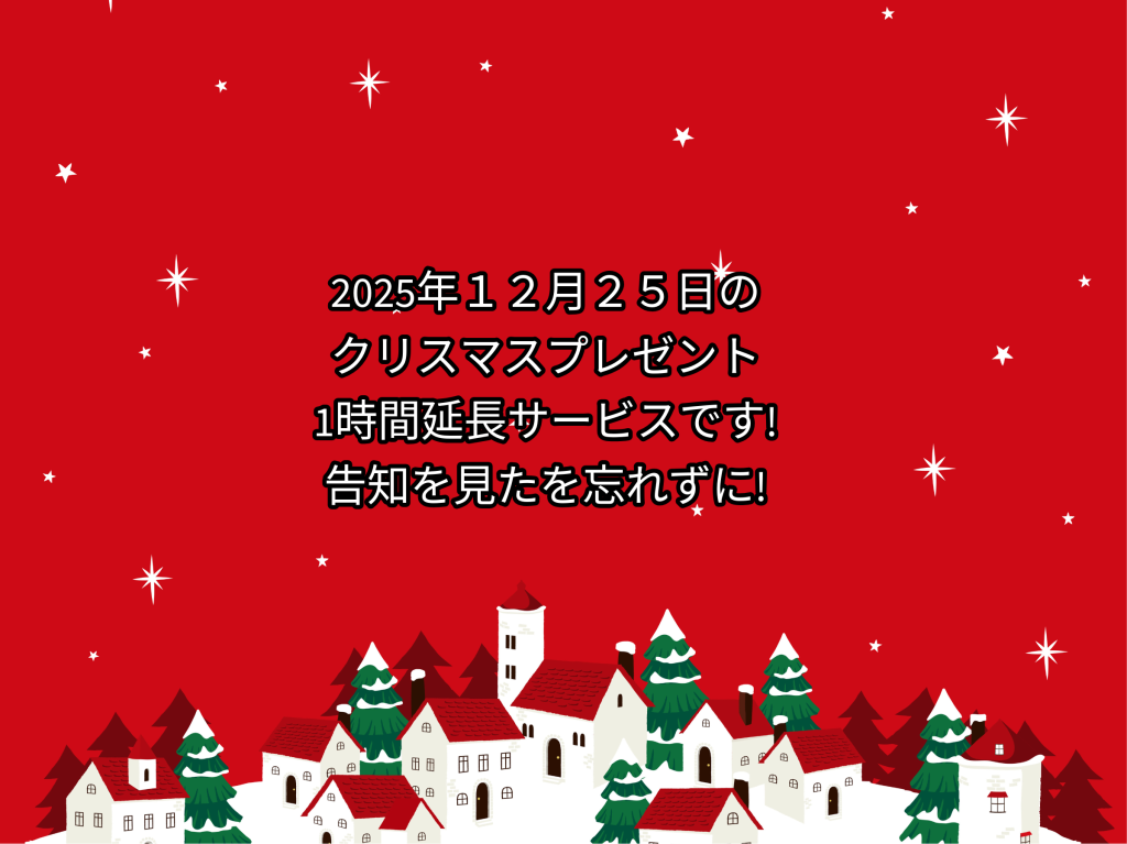 2025年12月25日は1時間延長サービス!