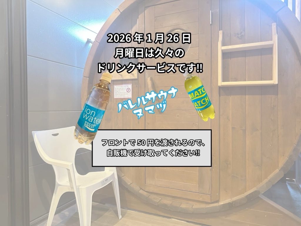 1月26日月曜は、日帰り貸切サウナをご利用のお客様全員にドリンクを1本サービスいたします! ■対象:1月26日にご来店のショートステイ(日帰り)利用のお客様■内容:お一人様につきワンドリンクプレゼント! 平日なら2時間5,000円〜、2名様まで同一料金でお... -